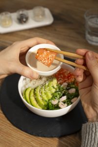 👉 Bergizi tinggi, lemak sehat dari salmon & alpukat.